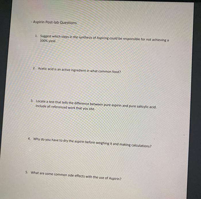 [46+] Prep Aspirin Lab Question, Solved: - Aspirin Post-lab Questions 1. Suggest Which Step... | Chegg.com